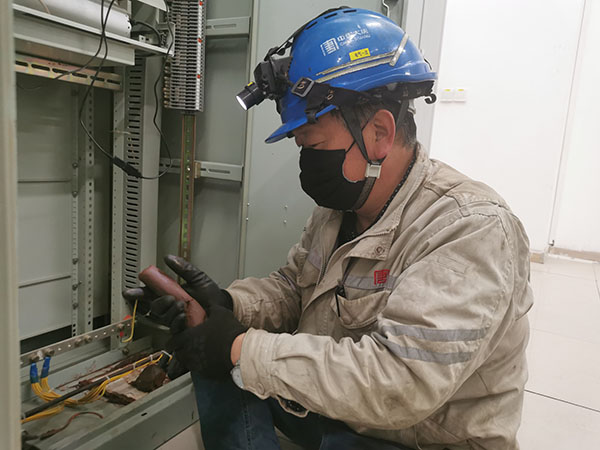 一線職工進行故障錄波器配電柜防火封堵