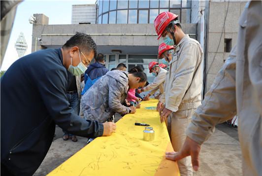 在宣誓活動前,為營造安全氛圍,我長山廠組織職工開展“安全生產(chǎn)月”簽名活動,職工在“落實(shí)安全責(zé)任,推動安全發(fā)展”條幅上莊嚴(yán)寫下了自己的承諾。