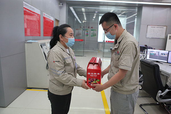 中國電力網(wǎng)訊 陣陣粽葉情,濃濃企業(yè)情。時值端午佳節(jié)來臨之際,內蒙古大唐海勃灣水利樞紐開發(fā)有限公司工會組織開展端午節(jié)慰問送溫暖活動,為一線職工帶去了粽子、水果等慰問品,并送上節(jié)日的問候和祝福。