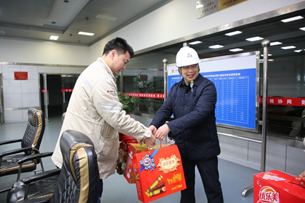 中國電力網(wǎng)訊 金牛昂首辭舊歲,瑞虎闊步迎新春。農(nóng)歷臘月三十,在舉國歡慶的日子,大唐石門發(fā)電公司總經(jīng)理、黨委書記楊萬格,黨委委員、副總經(jīng)理江建鋒,帶領(lǐng)慰問組深入生產(chǎn)現(xiàn)場,向堅(jiān)守崗位的員工送去誠摯的問候,并與除夕夜在崗員工一同守歲,共迎新春。