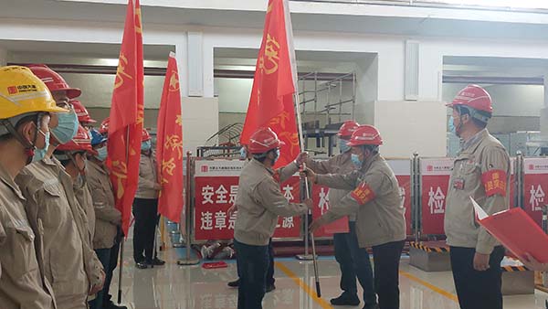 活動中,該公司黨委委員、紀委書記、工會主席李強同志宣讀了公司黨委印發(fā)《關于在1號機組A級檢修工作中充分發(fā)揮黨團組織作用的通知》的文件要求。公司黨委書記、執(zhí)行董事、總經(jīng)理薛福林同志為“1號機組A級檢修”黨員突擊隊、黨員服務隊、青年突擊隊分別授旗。生產(chǎn)一線黨員代表、青年代表分別圍繞1號機組A級檢修工作實際作了《黨員承諾》《青年承諾》。公司黨委委員、副總經(jīng)理錢明雄同志帶領廣大黨員在檢修現(xiàn)場面向鮮紅的黨旗重溫了入黨誓詞。