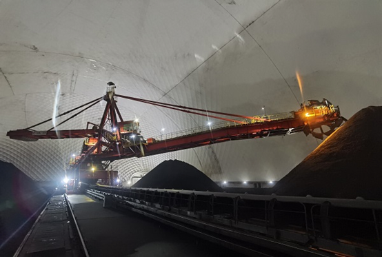 浙能樂清發(fā)電公司斗輪機(jī)通宵堆料提庫(kù)存。通訊員 孫超 攝