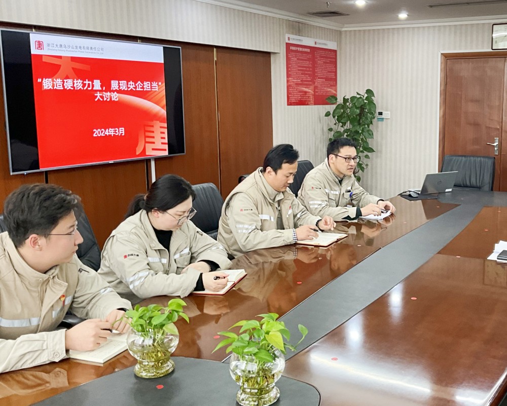 中國電力網(wǎng)訊(通訊員 孫靜嫻) “鍛造硬核力量 展現(xiàn)央企擔(dān)當(dāng)”大討論活動開展以來,浙江大唐烏沙山發(fā)電有限責(zé)任公司將大討論活動與中心工作緊密結(jié)合,研究制定活動實施方案,明確活動時間節(jié)點,扎實推進(jìn)大討論活動走深走實。