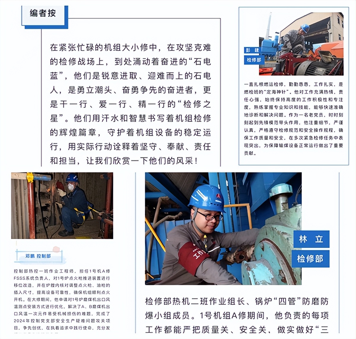 據(jù)了解,3至5月份,該公司相繼拉開了1號(hào)機(jī)A修、4號(hào)機(jī)A修和3號(hào)機(jī)C修的攻堅(jiān)序幕,這是該公司實(shí)施一體化管理后迎來的首次機(jī)組年度檢修。面對(duì)建廠以來機(jī)組年度檢修項(xiàng)目最多、規(guī)模最大、工期最長(zhǎng)的考驗(yàn),全體檢修參戰(zhàn)人員不畏艱難、迎難而上,始終堅(jiān)守在檢修一線默默奉獻(xiàn),涌現(xiàn)了一批沖鋒在前、奮勇攻堅(jiān)的先進(jìn)典型。