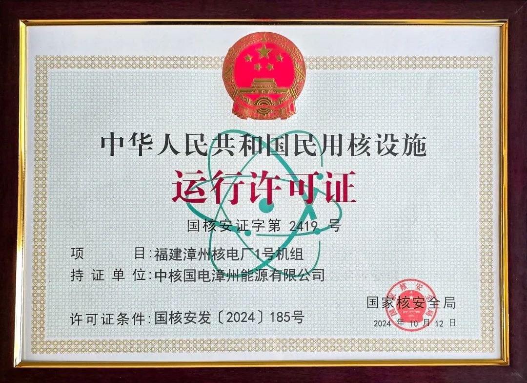 10月12日,生態(tài)環(huán)境部向中核集團(tuán)旗下中國(guó)核電(股票代碼:601985)投資控股的漳州核電1號(hào)機(jī)組頒發(fā)運(yùn)行許可證。生態(tài)環(huán)境部副部長(zhǎng)、國(guó)家核安全局局長(zhǎng)董保同出席儀式并為漳州能源頒發(fā)許可證,中核集團(tuán)黨組成員、副總經(jīng)理張凱出席并見證頒證儀式。15時(shí)18分,漳州核電1號(hào)機(jī)組開始裝載首爐核燃料,標(biāo)志著機(jī)組進(jìn)入主系統(tǒng)帶核調(diào)試階段,為后續(xù)機(jī)組臨界、并網(wǎng)發(fā)電等工作奠定了堅(jiān)實(shí)基礎(chǔ)。