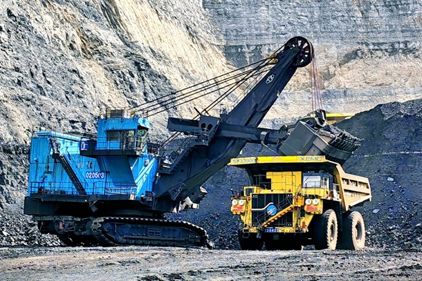 圖為黑岱溝露天煤礦電鏟在采煤區(qū)進(jìn)行裝車作業(yè)