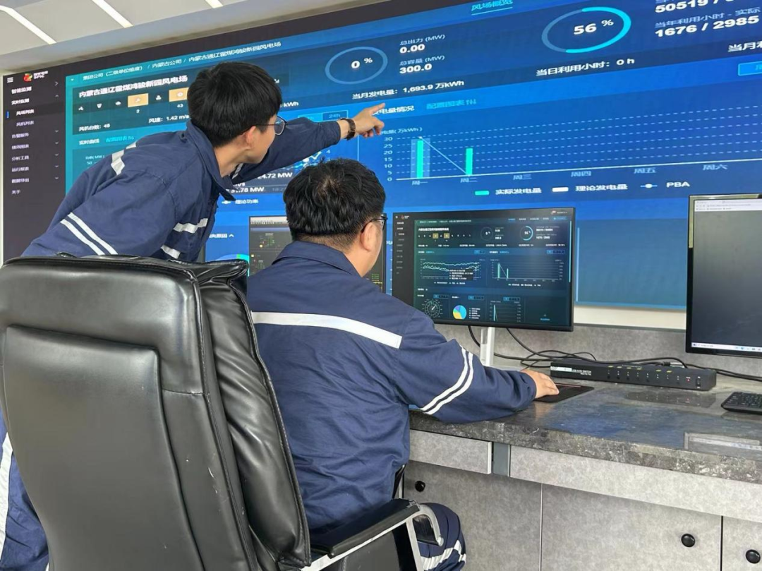▲公司職工正在通過智慧風(fēng)場平臺系統(tǒng)監(jiān)控風(fēng)機(jī)運(yùn)行情況