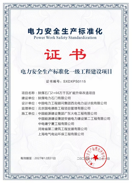 中國(guó)電力網(wǎng)訊 (通訊員:李曙輝 王向麗) 近日,從評(píng)審機(jī)構(gòu)傳來(lái)喜訊,陜煤石門(mén)2x66萬(wàn)千瓦擴(kuò)能升級(jí)改造項(xiàng)目通過(guò)安全生產(chǎn)標(biāo)準(zhǔn)化一級(jí)達(dá)標(biāo)評(píng)審,標(biāo)志著項(xiàng)目安全生產(chǎn)管理水平邁上新臺(tái)階。