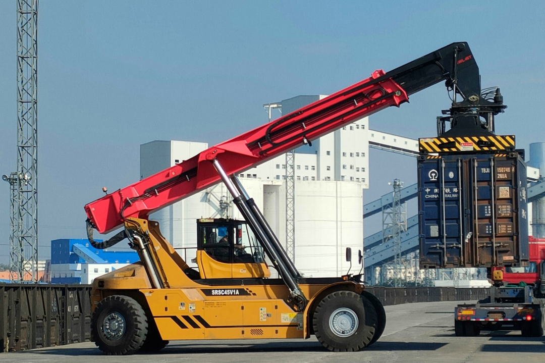錦界公司工作人員進行集裝箱裝車作業(yè)