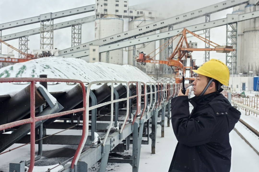 錦界公司工作人員檢查煤場防寒防凍措施