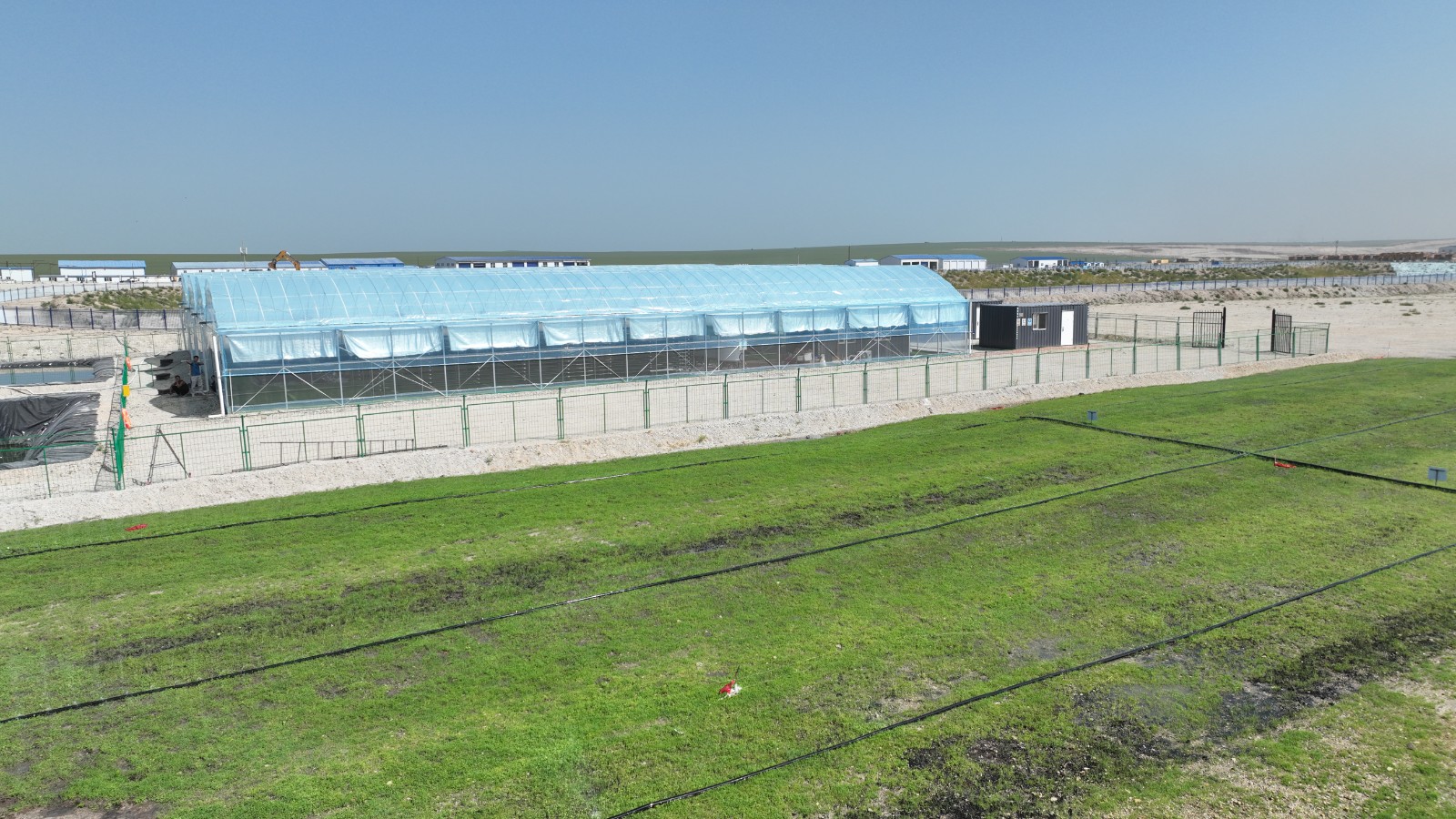 由新能源院研發(fā)的這一微藻固碳系統(tǒng)于今年5月27日在寶日希勒礦開工,已建成5萬平方米示范工程,月產(chǎn)微藻活性液150噸、高營養(yǎng)腐殖土100噸。澆灌了微藻藻液的實(shí)驗(yàn)田,植物生長(zhǎng)率提高20%。