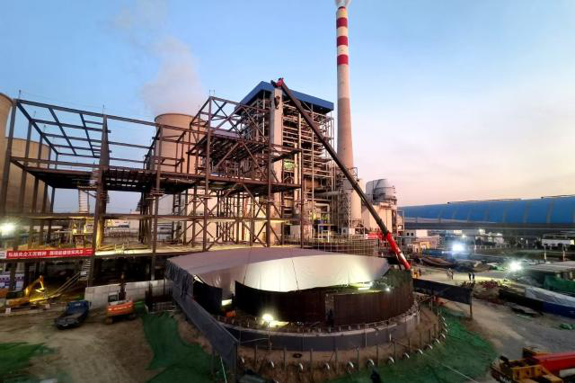 近日,隨著第一塊儲熱高溫鹽罐底板吊裝就位,國家能源集團安徽宿州電廠熔鹽儲熱高溫鹽罐主體安裝工程正式進入實施階段。