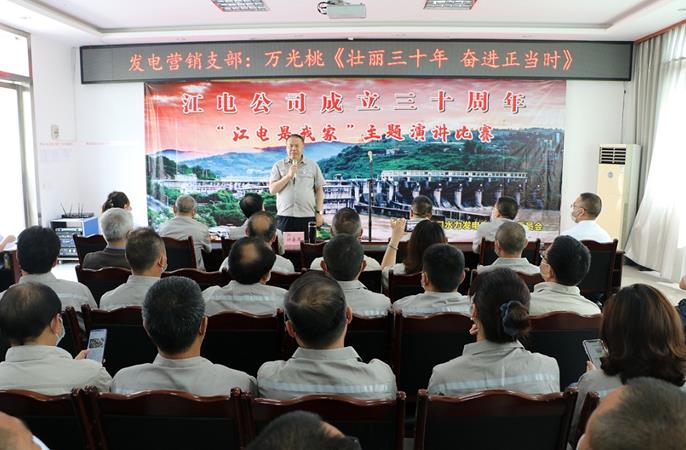 為紀念四川江口水力發(fā)電有限公司成立30周年,激勵和引導廣大員工積極展現(xiàn)企業(yè)新形象,講好江電故事,唱響新發(fā)展旋律。5月12日上午,江電公司舉辦了“江電是我家”主題演講比賽,經(jīng)過各支部擇優(yōu)推薦,最終11名選手脫穎而出。選手們圍繞“江電是我家”這一主題,聯(lián)系自身經(jīng)歷和立足崗位實際,用樸實、生動、真摯的語言,從不同的角度、不同層面,回顧三十年來江電的建設歷程,謳歌公司數(shù)年發(fā)展中的感人事跡,講述投身江電事業(yè)的付出與收獲,歷練和成長,充分展現(xiàn)了江電人昂揚向上、愛崗敬業(yè)、甘于奉獻的精神風貌,選手們富有感染力的演講打動了在場的每一位干部員工,將現(xiàn)場氛圍一步步推向高潮,贏得了評委和觀眾的陣陣掌聲。