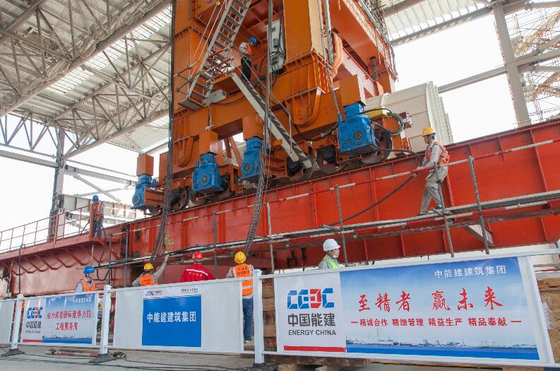 本次就位的1號(hào)燃?xì)廨啓C(jī)發(fā)電機(jī)定子重297噸,采用中能建建筑集團(tuán)特制的600噸專用起吊機(jī)械進(jìn)行吊裝。整個(gè)吊裝過程平穩(wěn)有序,起重指揮、操作和安裝人員配合默契,全過程一氣呵成,歷時(shí)2小時(shí)31分,發(fā)電機(jī)定子吊裝順利就位。