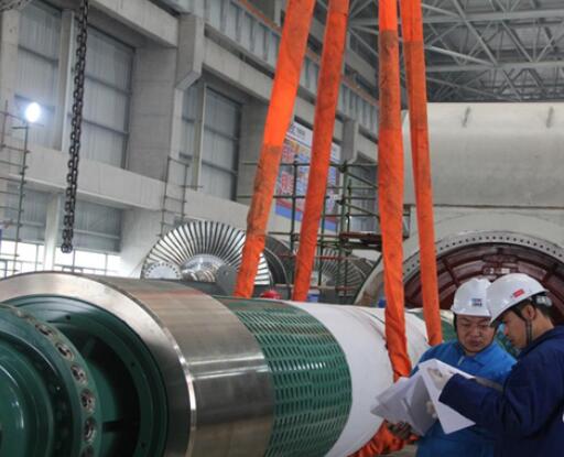 作業(yè)人員正在進行轉(zhuǎn)子檢查試吊、調(diào)整轉(zhuǎn)子水平