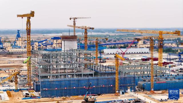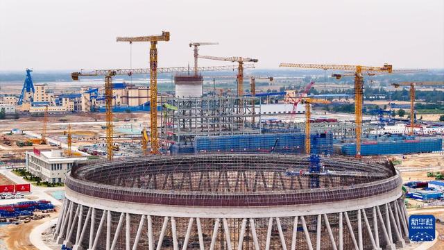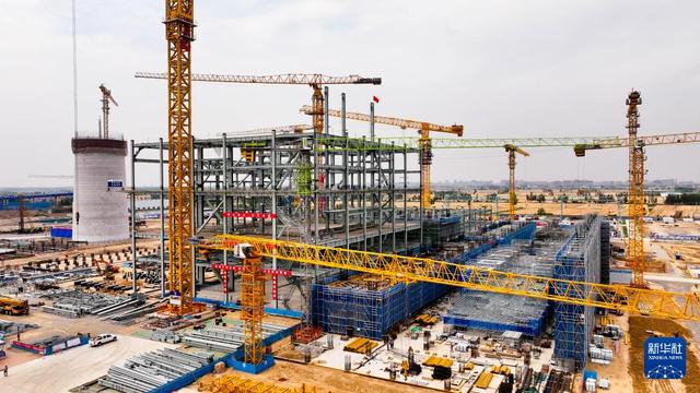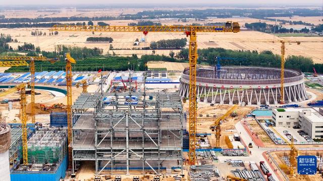 6月5日拍攝的位于山東省鄆城縣的大唐鄆城630℃國家電力示范項(xiàng)目建設(shè)現(xiàn)場(無人機(jī)照片)。