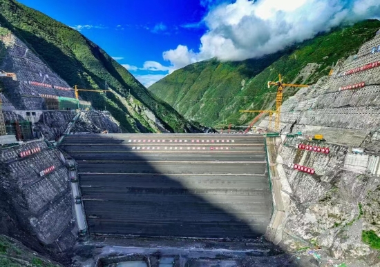國家能源集團大渡河金川水電站大壩為混凝土面板堆石壩,壩頂高程2258米,最大壩高112米,壩頂長度257米,壩頂寬度10米,填筑總方量約456萬立方米。