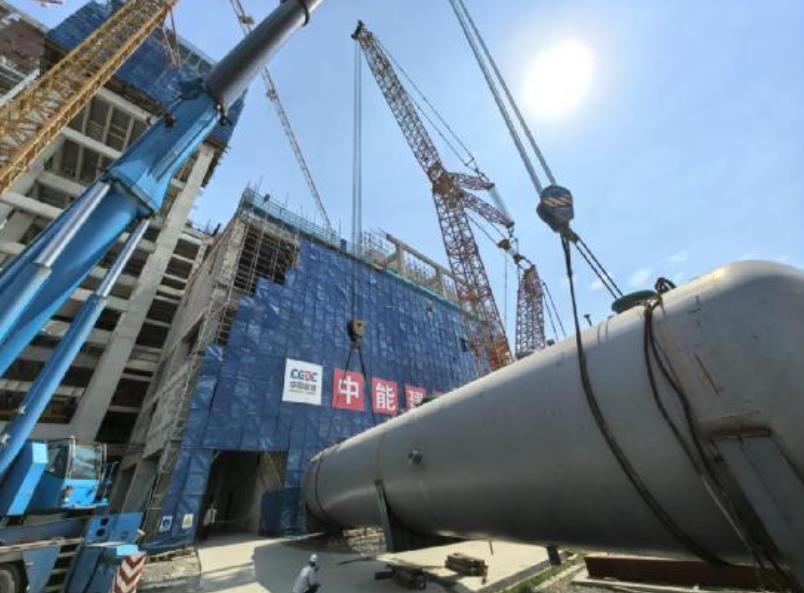 本次吊裝的除氧器,長(zhǎng)22.6米,總重90噸,采用450噸履帶吊和400噸汽車吊雙機(jī)抬吊的方式吊裝,經(jīng)過2小時(shí)就位至除氧間32.5米層。為確保除氧器吊裝工作順利完成,項(xiàng)目部通過科學(xué)謀劃,嫻熟運(yùn)用“四力工作法”,從人員組織、機(jī)械調(diào)度、配合協(xié)調(diào)等多方面入手,多次對(duì)除氧器吊裝專項(xiàng)施工方案進(jìn)行評(píng)審,開展全方位、多角度的安全隱患排查工作,針對(duì)施工和管理人員進(jìn)行詳細(xì)的安全、技術(shù)交底,確保吊裝前準(zhǔn)備工作充分無遺漏。在吊裝過程中,項(xiàng)目始終牢記沒有安全這個(gè)“1”,其他要素都是“0”的安全觀,通過設(shè)立作業(yè)警戒區(qū)域,安全部、機(jī)械化科全程監(jiān)督旁站,現(xiàn)場(chǎng)指揮人員信號(hào)準(zhǔn)確,與操作人員協(xié)調(diào)一致、配合默契。從除氧器起吊、提升、轉(zhuǎn)向、就位整個(gè)吊裝過程安全、平穩(wěn)、有序的進(jìn)行。