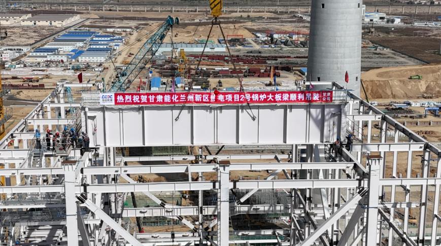 10月15日,中國(guó)能建西北院總承包的甘肅能化蘭州新區(qū)熱電項(xiàng)目2號(hào)鍋爐大板梁吊裝就位。