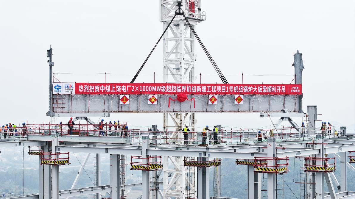 11月4日,中國(guó)能建建筑集團(tuán)承建的江西上饒發(fā)電廠2×1000兆瓦級(jí)超超臨界機(jī)組新建工程1號(hào)機(jī)組鍋爐大板梁開吊。