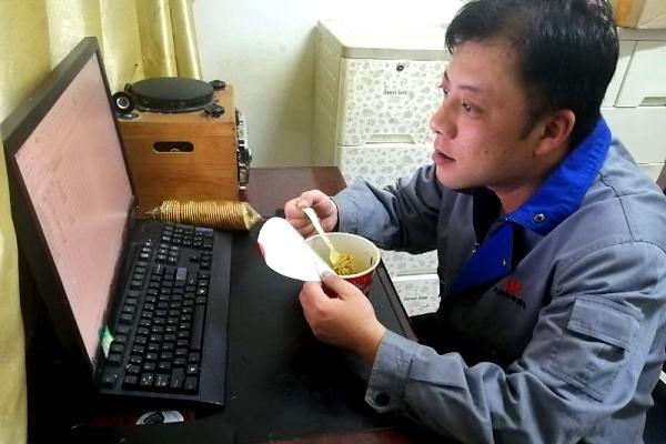 年前,為了讓項(xiàng)目部的兄弟們能回家團(tuán)圓,周國劍一如既往地選擇了堅(jiān)守。就這樣,這個(gè)春節(jié),泡面是他的主食,餅干就是他的“調(diào)味品”。