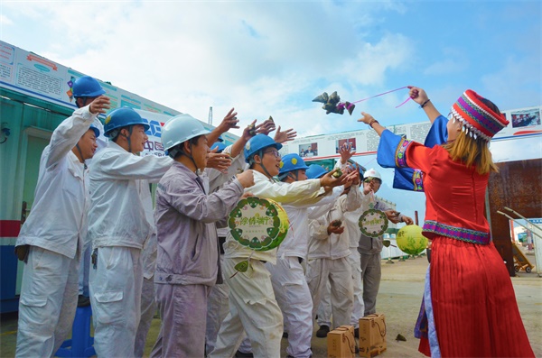 “粽情粽意,端午迎祥,堅守崗位,履職盡責……”這是中國能建安徽電建二公司防城港項目部張富班早班會上高喊口號的情景。端午前夕,身穿壯族服飾的小姑娘黃發(fā)娟將粽子串起并拋出,班組成員爭相伸手接。只見,20余名施工人員拿著粽子,剝著鴨蛋,有說有笑。端午未至,可濃濃的粽香已彌漫整個核電現(xiàn)場……