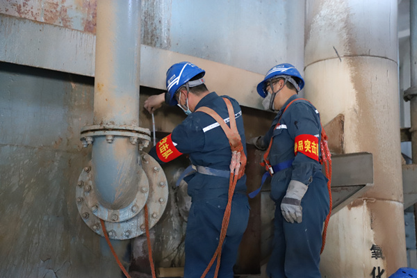 一個黨支部就是一座堡壘,一個黨員就是一面旗幟,疫情防控嚴峻形勢下,灰硫車間黨支部戰(zhàn)斗堡壘在助力安全生產中迸發(fā)出強大力量。3月16日1點40,吸收塔漿液漏泄,影響脫硫系統(tǒng)安全運行,存在環(huán)保參數超標風險,轉機班在接到缺陷后,立即組織全員上陣,黨員廖振海,李亞洲、楊得志在檢修中率先垂范,爭做表率,全身上下被漿液淋濕浸透也絕不后退半步,利用自制的木頭塞經過5次嘗試臨時封堵住漏點,并用6mm鐵板自行焊接制作密封盒,內部澆灌水泥,徹底消除了漏泄的隱患,確保了環(huán)保設備安全運行。灰硫車間在對灰場2號除灰管道巡視檢查中發(fā)現灰管道漏泄,為了避免發(fā)生環(huán)保事件,機械班迅速組織人員搶修。工作中,黨員王雷、吳侃,工作組成員夏延鵬沖鋒在前,進入到冰冷的水中用卡具封堵漏點,由于搶修及時避免了環(huán)保事件的發(fā)生,保證了我廠除灰渣系統(tǒng)安全可靠運行?;伊蜍囬g黨支部在特殊時期,積極響應廠黨委的號召,嚴格執(zhí)行我廠各項工作部署,黨員帶頭沖鋒一線,堅決守住人身、設備、環(huán)保底線,體現“硬核”擔當,用行動展示基層黨支部昂揚向上的精神面貌。