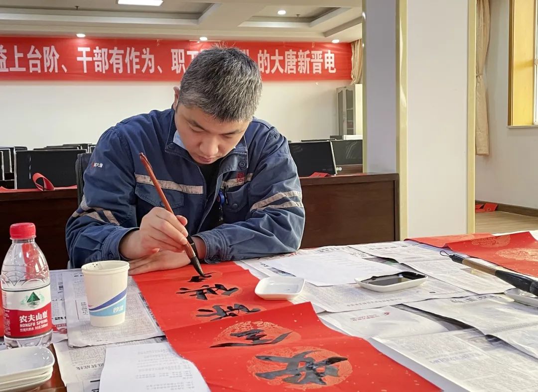 他寫(xiě)的多幅與安全生產(chǎn)相關(guān)的春聯(lián)作品被張貼在公司辦公樓門(mén)口和生產(chǎn)廠區(qū)各區(qū)域大門(mén)上,成為“門(mén)面擔(dān)當(dāng)”,助力營(yíng)造生產(chǎn)現(xiàn)場(chǎng)安全文化氛圍的同時(shí),也獲得電氣班“神筆馬良”的美稱(chēng)。