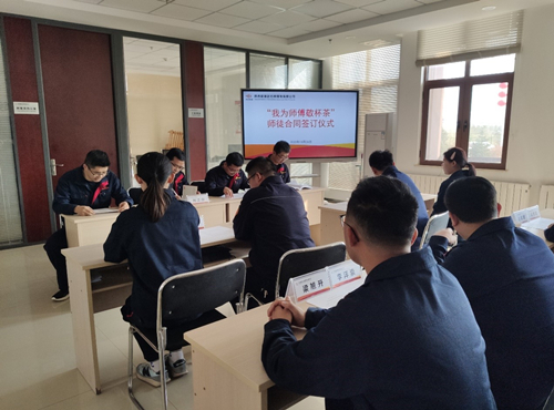 儀式上,6對師徒簽訂“師帶徒”協(xié)議書,徒弟向師傅敬“拜師茶”,師傅向徒弟回贈(zèng)鋼筆,鼓勵(lì)新入職員工要秉承“甘于奉獻(xiàn) 追求卓越”的企業(yè)精神,堅(jiān)定信念,積極學(xué)習(xí),快速適應(yīng)崗位職責(zé)。
