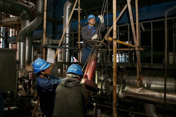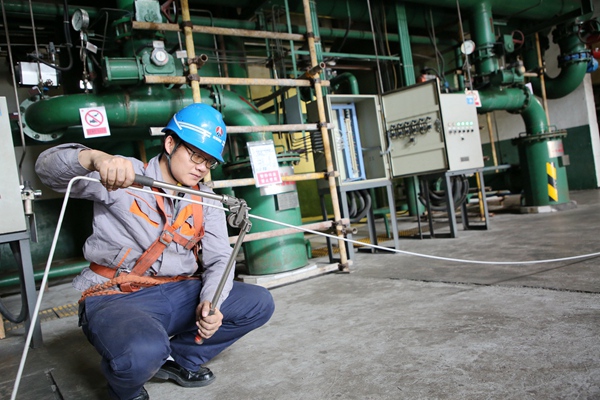 熱機(jī)三班胡雙志正在接2號(hào)機(jī)壓縮空氣管