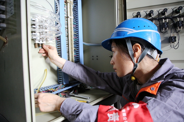 熱控三班彭郴梅正在進(jìn)行2號(hào)機(jī)精處理就地?zé)峥卦O(shè)備檢修