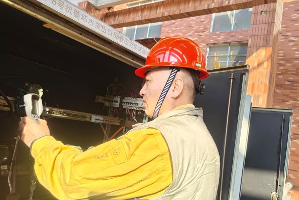 圖為機(jī)控班人員正在對(duì)循泵變送器進(jìn)行測(cè)溫