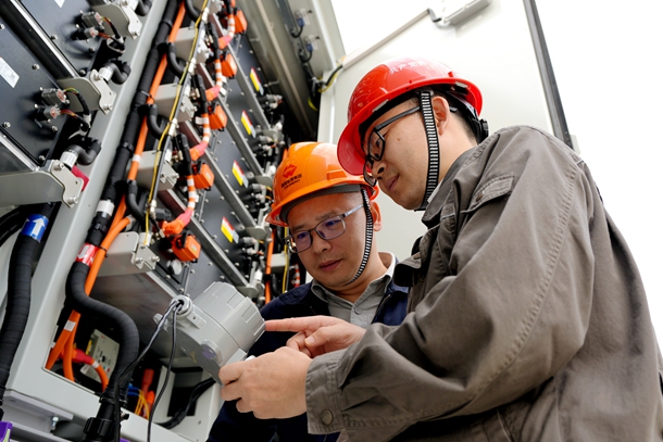 設(shè)備調(diào)試中,往往需要不止一次地反復(fù)驗證。5號電池艙通訊與EMS后臺通訊存在頻繁中斷的現(xiàn)象,廠家經(jīng)采取更換通訊電纜及裝置、加裝抗干擾磁環(huán)等措施,問題仍未消除。伍玉祥帶著團(tuán)隊一起重新梳理通訊柜的接地線,仔細(xì)分析原因并改變接地方式,終于解決5號電池艙通訊中斷的難題。