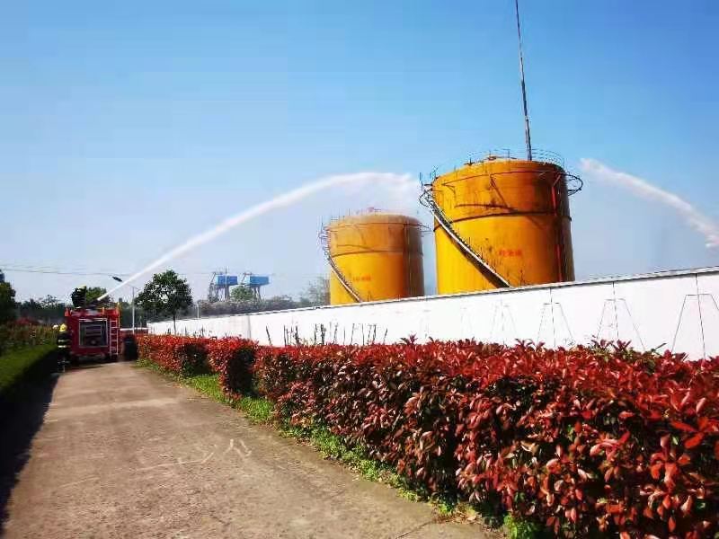值長(zhǎng)立即奔赴現(xiàn)場(chǎng)坐鎮(zhèn)指揮,各搶險(xiǎn)工作組按規(guī)定的職責(zé)和程序展開(kāi)救援行動(dòng)。“運(yùn)行控制組立即滅火系統(tǒng),做好系統(tǒng)隔離和監(jiān)視”。當(dāng)值單元長(zhǎng)組織啟動(dòng)泡沫滅火系統(tǒng)(模擬操作),啟動(dòng)油罐噴淋冷卻水,啟動(dòng)消火栓消防電泵。關(guān)閉#1-#3燃油母管總門(mén)、停止供油泵運(yùn)行。運(yùn)行人員負(fù)責(zé)監(jiān)控運(yùn)行設(shè)備的運(yùn)行情況。