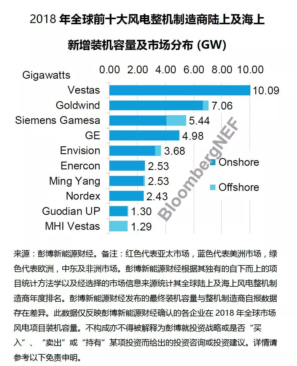 據(jù)悉,國際著名咨詢機構(gòu)彭博新能源財經(jīng)昨日正式發(fā)布了2018年全球風電整機商排名。具體排名及報告如下: