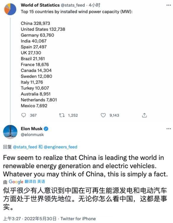 5月30日消息,特斯拉公司CEO埃隆·馬斯克回復(fù)網(wǎng)友時(shí)表示,似乎很少有人意識(shí)到中國(guó)在電動(dòng)汽車和可再生能源發(fā)電方面領(lǐng)先世界,這是事實(shí)。