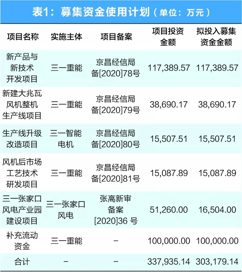 在風(fēng)電行業(yè)景氣度提升之際,三一重能積極登陸資本市場,有望借助資本市場的力量強化公司核心競爭力,為我國能源結(jié)構(gòu)轉(zhuǎn)型貢獻力量。資料顯示,公司擬投入30.32億元募集資金用于風(fēng)機產(chǎn)品相關(guān)技術(shù)的開發(fā),預(yù)期項目建成后將擴大公司未來在大兆瓦風(fēng)力發(fā)電機市場上的占有率,從而保持市場競爭優(yōu)勢。