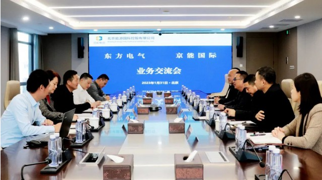 2023年1月31日,北京能源國際控股有限公司總裁朱軍在北京會見東方電氣風電股份有限公司總經(jīng)理葛紅兵一行,雙方就新能源領域深入合作進行座談交流。東方電氣風電研究院副院長曾志,營銷中心副主任駱麗竹、張軍,營銷中心北方大區(qū)總監(jiān)梁雄;京能國際副總裁賈耕、王六虎,安全生產總監(jiān)周國,計劃經(jīng)營部總經(jīng)理劉吉廣等相關人員參加會議。