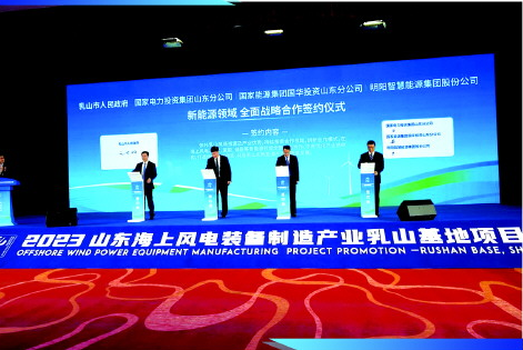 活動(dòng)現(xiàn)場(chǎng),乳山與國(guó)家電力投資集團(tuán)山東分公司、國(guó)家能源集團(tuán)投資山東分公司、明陽智慧能源集團(tuán)股份公司等8家企業(yè)現(xiàn)場(chǎng)簽署合作協(xié)議,同時(shí),啟動(dòng)了國(guó)華科技創(chuàng)新中心建設(shè)。