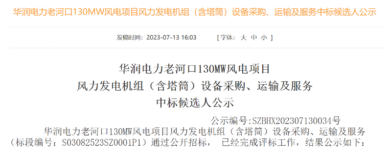 公告顯示,第一中標(biāo)候選人:三一重能股份有限公司,投標(biāo)價(jià)格:283370000.00元。第二中標(biāo)候選人:新疆金風(fēng)科技股份有限公司,投標(biāo)價(jià)格:285439400.00元。