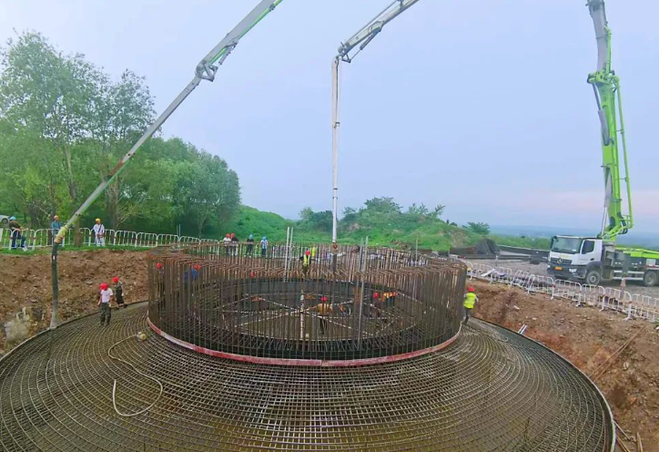 本工程風(fēng)機(jī)基礎(chǔ)型式為現(xiàn)澆圓形無(wú)樁承臺(tái)擴(kuò)展基礎(chǔ),承臺(tái)鋼筋78.1噸,混凝土680方,風(fēng)機(jī)吊裝混塔段采用800噸履帶吊,鋼塔及機(jī)頭吊裝采用1250噸履帶吊,充分考慮安全余量。