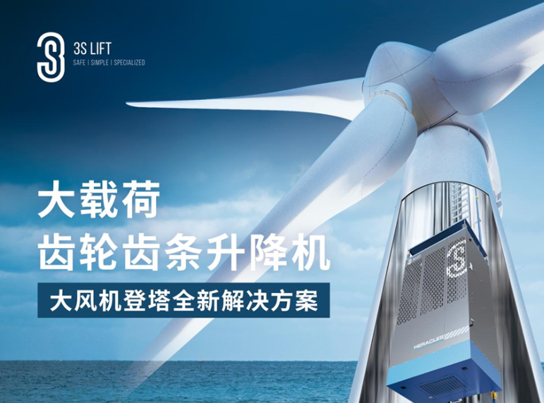 還有值得一提的是,為滿足大兆瓦風機和高塔筒的升降需求,3S推出了載荷350kg(含以上),空間可承載3人(及以上),以爬梯或鋼齒條為導向的大載荷塔筒升降機,疊加多項安全配置,可兼容擴展功能更強大,升降機設(shè)備智能化更高。憑借其高安全性和高效率性,3S大載荷升降機將成為大風機登塔解決方案優(yōu)選。