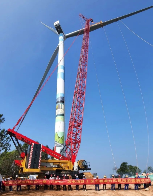 六爐山風(fēng)電場(chǎng)規(guī)劃裝機(jī)400MW,計(jì)劃安裝56臺(tái)6.7MW和4臺(tái)6.25MW機(jī)組,是國(guó)投廣西新能源在欽州市靈山縣開發(fā)建設(shè)的首批風(fēng)電項(xiàng)目之一,也是該公司成立以來建設(shè)的單體容量最大山地風(fēng)電項(xiàng)目,2022年3月獲得核準(zhǔn),2022年10月進(jìn)場(chǎng)道路開工。