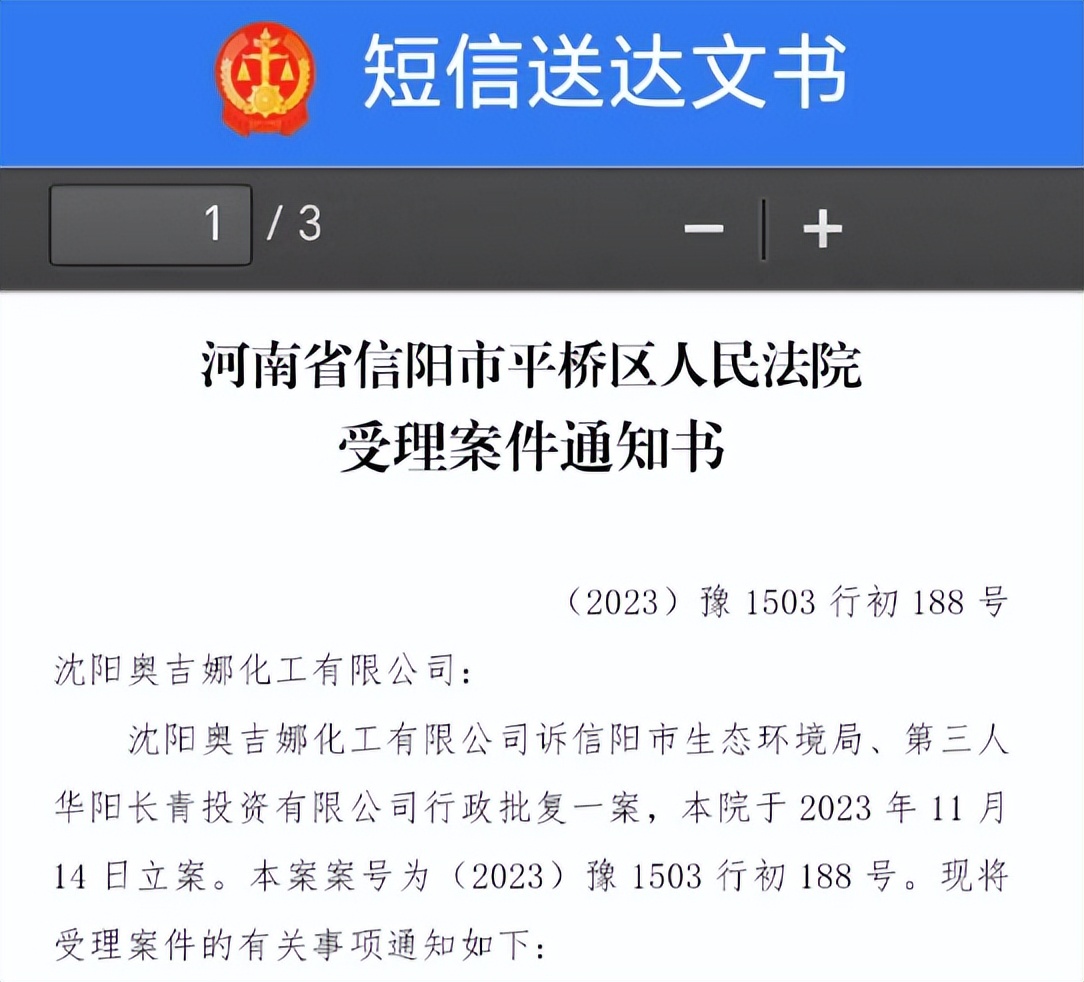 2023年10月18日,奧吉娜公司依據(jù)《行政訴訟法》和《行政訴訟法解釋》,將信陽市環(huán)境局和第三人華陽長青公司訴至信陽市平橋區(qū)人民法院,請求法院:1、判決撤銷被告作出的《信陽市生態(tài)環(huán)境局關(guān)于沈陽奧吉娜化工有限公司舉報華陽長青投資有限公司違法經(jīng)營及固始分局不作為、亂作為等問題調(diào)查處理的函》;2、責(zé)令被告針對原告于2023年8月3日向被告申訴舉報華陽長青投資有限公司事項,限期進(jìn)行重新調(diào)查和答復(fù);3、請求人民法院判令被告2023年9月13日調(diào)查處理函認(rèn)定的廢合成油不應(yīng)按危險廢物有關(guān)規(guī)定進(jìn)行管理,違反法律規(guī)章的規(guī)定,無效。(奧吉娜合成油)