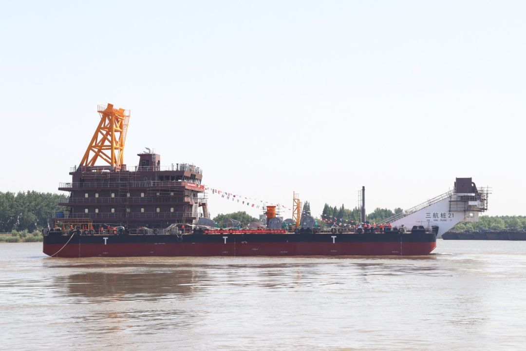 “三航樁21”的順利吉水,代表了本項(xiàng)目又一關(guān)鍵節(jié)點(diǎn)的完成,為后續(xù)船舶順利的交付打下了堅(jiān)實(shí)的基礎(chǔ)。“三航樁21”交付后,將應(yīng)用于橋梁、碼頭、水利工程施工。