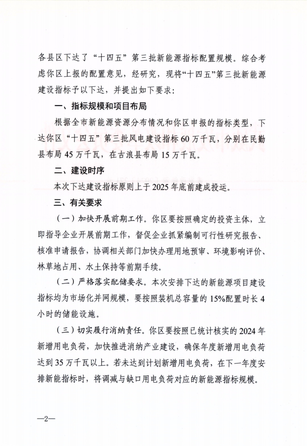 《通知》顯示,武威市本次共下達100萬千瓦風電建設指標,其中,古浪縣布局55萬千瓦,民勤縣布局45萬千瓦。以上建設指標原則上均于2025年底前建成投運。