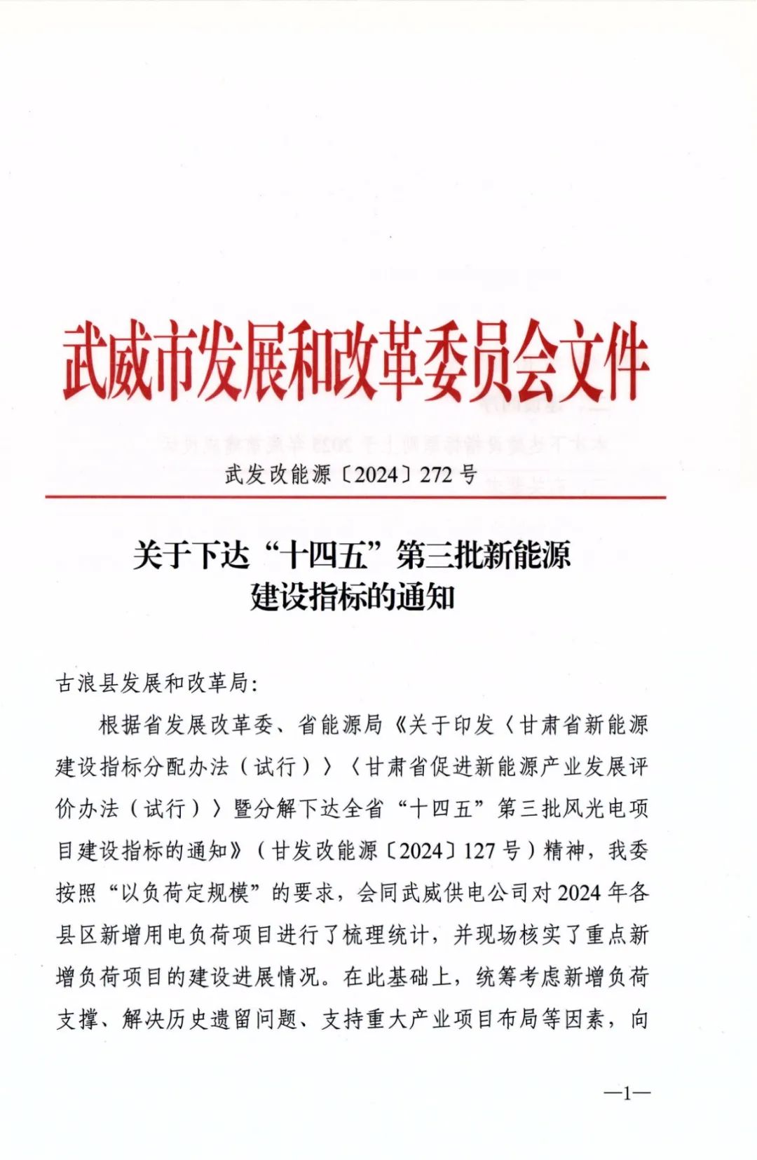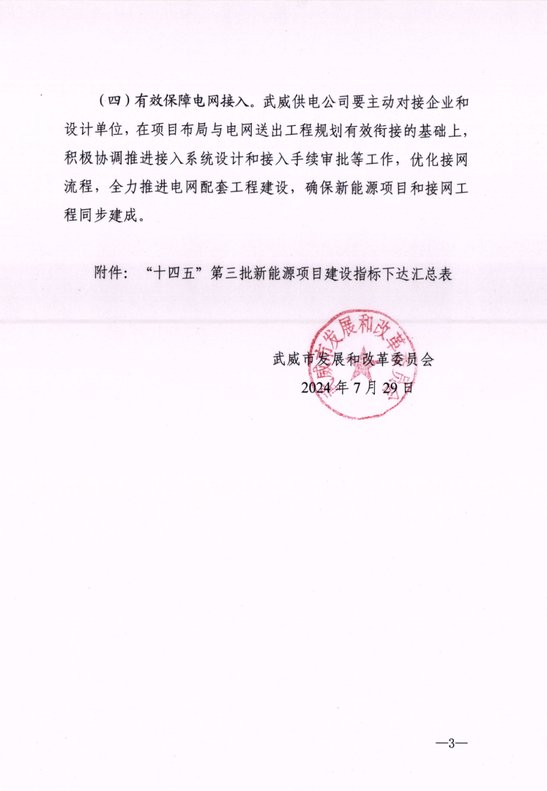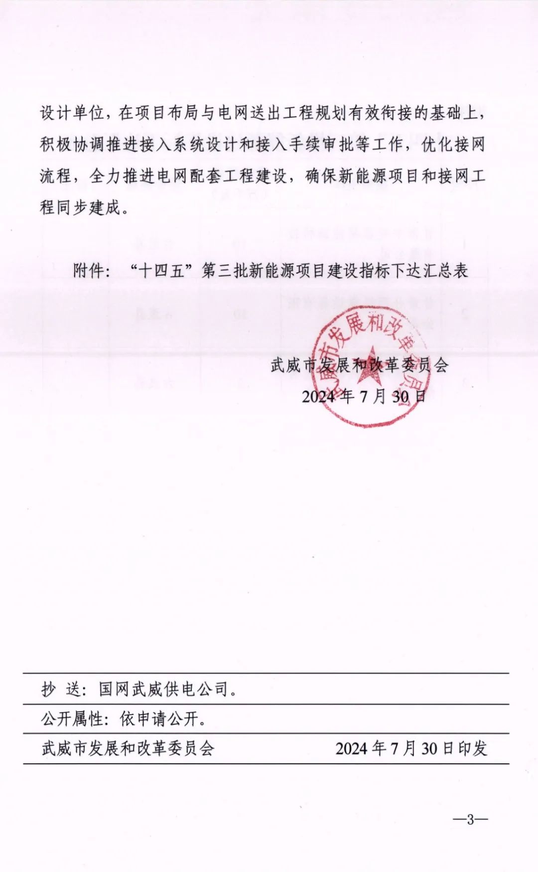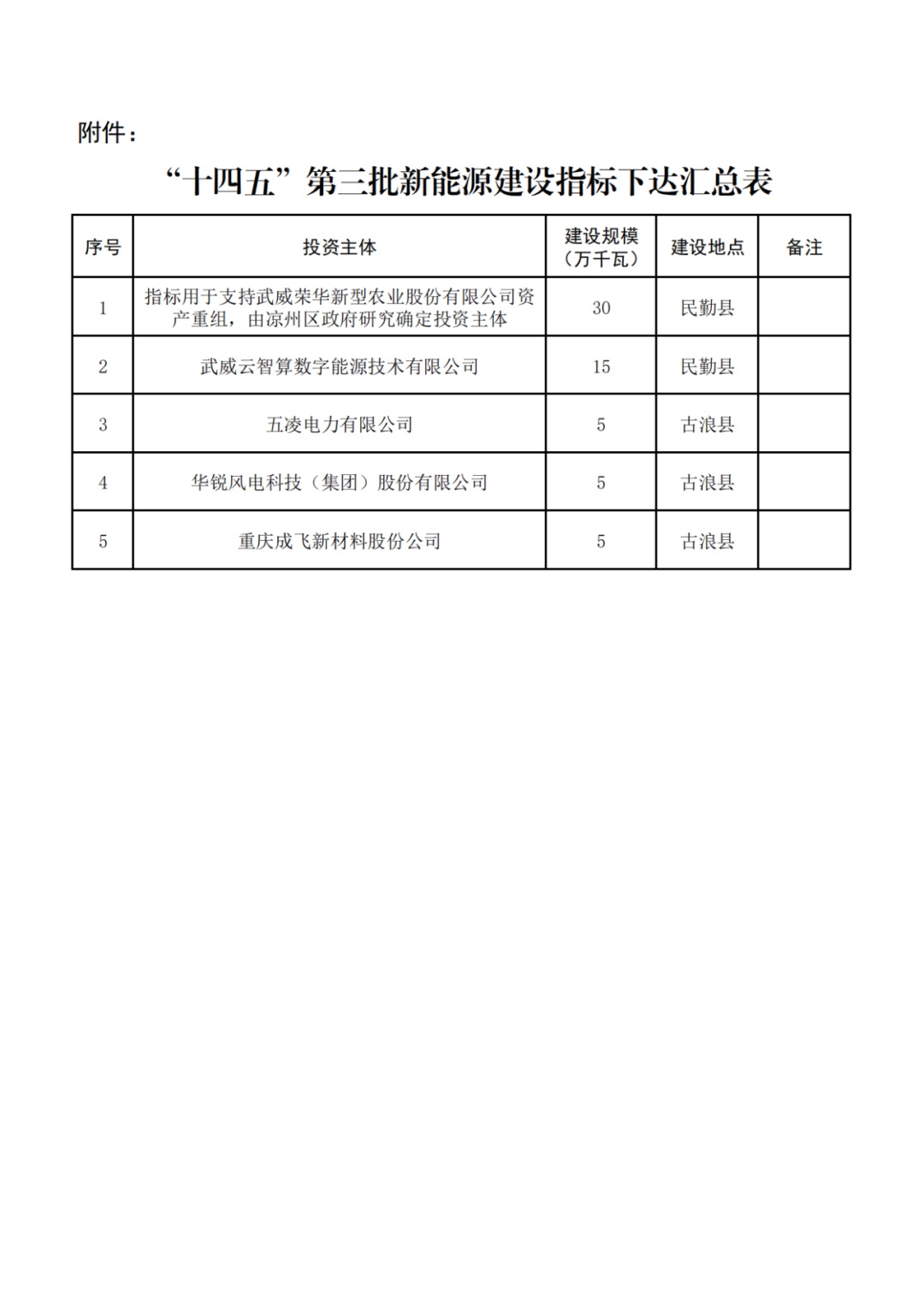 7月30日,甘肅省武威市發(fā)改委發(fā)布《關于下達“十四五”第三批新能源建設指標的通知》。