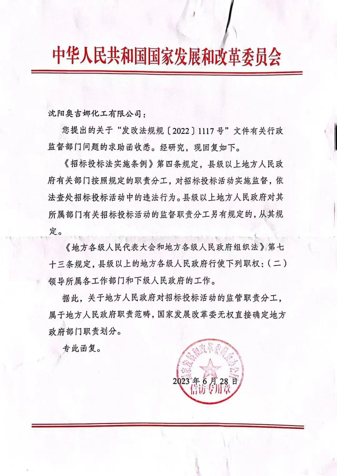 原告曾就被告一和被告三串通投標赤裸裸的違法行為多方尋求監(jiān)督部門監(jiān)管,但一直求告無門,無奈向國家發(fā)展和改革委員會投訴,經國家發(fā)展和改革委員會回函“地方人民政府對招標投標活動的監(jiān)管職責分工,屬于地方人民政府職責范疇,國家發(fā)展改革委無權直接確定地方政府部門職責劃分”(下附國家發(fā)改委回函)。