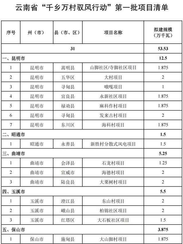 為持續(xù)打造綠色能源強省、大力發(fā)展新能源、助力鄉(xiāng)村振興,云南近日發(fā)布《“千鄉(xiāng)萬村馭風行動”第一批項目開發(fā)建設方案》(以下簡稱《方案》),將開發(fā)建設第一批共31個風電項目,裝機容量53.53萬千瓦。