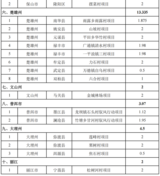 第一批項目建設清單包括大村、海德村、東山村等項目,主要分布在昆明、曲靖、楚雄等10個州(市),涉及嵩明縣、永善縣、宣威市等?!斗桨浮访鞔_,有關州(市)和部門要嚴格執(zhí)行我省“千鄉(xiāng)萬村馭風行動”總體方案,規(guī)范資源配置,加強要素保障,強化日常調度監(jiān)管,壓實環(huán)保、安全生產等責任,嚴密防范廉政風險,嚴禁以非正當手段干預和插手工程項目建設,推動項目加快建設、按期投產。